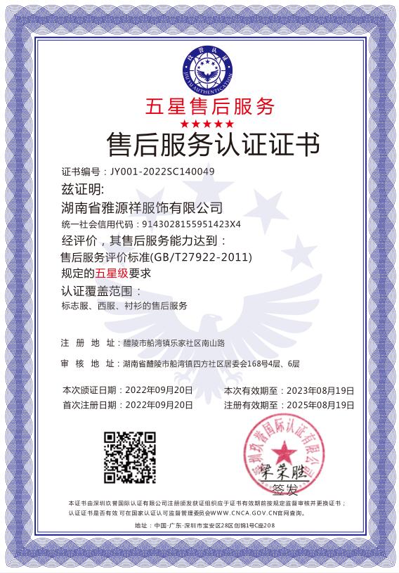售后服務認證證書